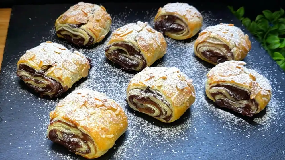 Blitzschnelle Schoko-Pudding-Schnecken mit Mandeln