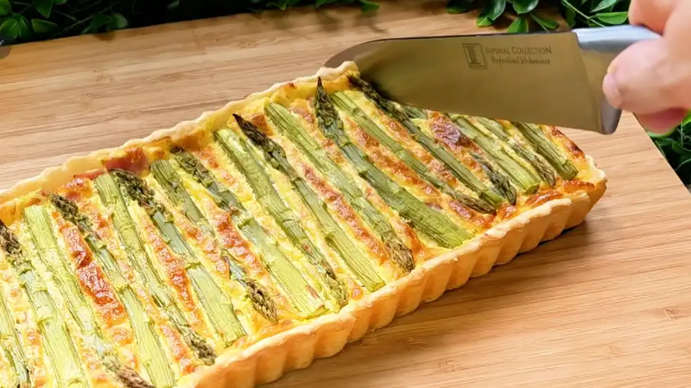 Bist du bereit für eine Geschmacksexplosion? Diese Spargel-Schinken-Tarte kombiniert die Knusprigkeit von Blätterteig mit einer unvergleichlich cremigen Füllung. Die Kombination aus grünem Spargel und würzigen Schinkenwürfeln eingebettet in eine Sauce aus Joghurt und Hollandaise macht dieses Gericht zum Star auf jedem Esstisch.