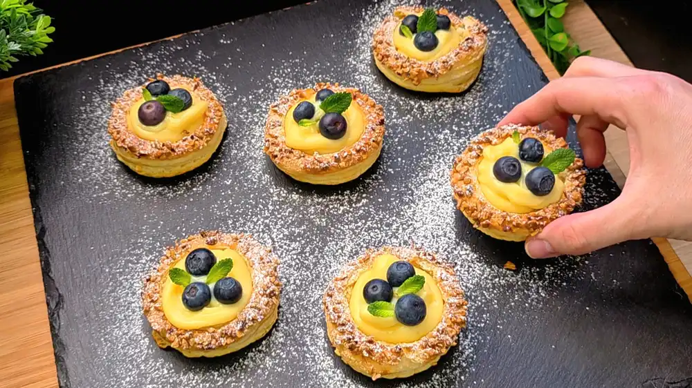 Diese Vanille-Törtchen mit Heidelbeeren aus Blätterteig sind ein echter Hingucker! 🫐✨