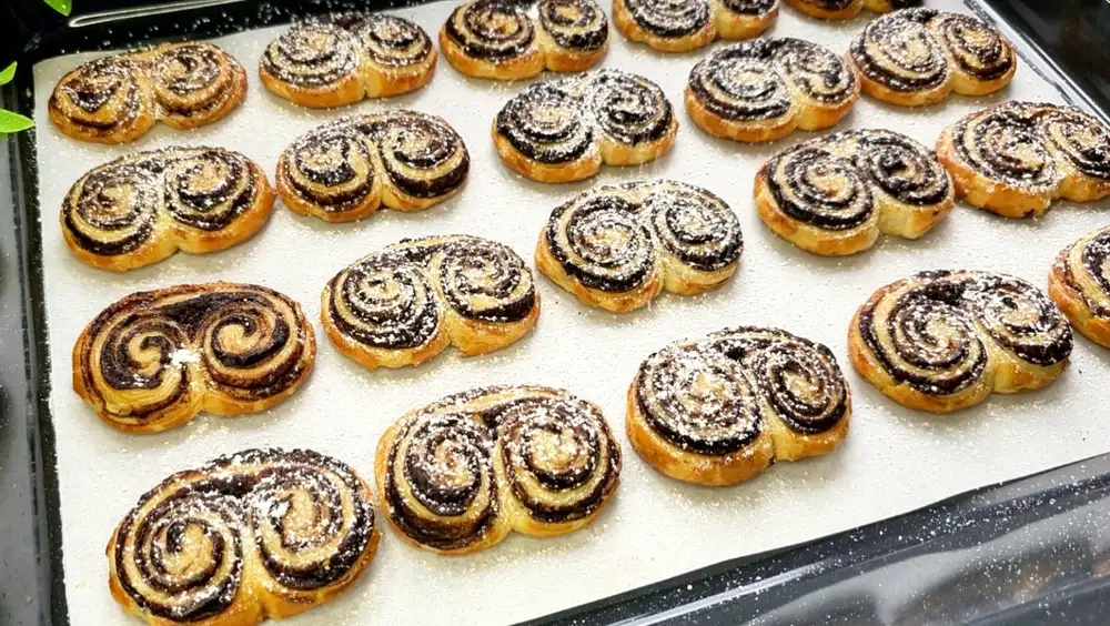 Du liebst den Duft von frisch gebackenem Blätterteig und Schokolade? Dann wirst du diese Schweineöhrchen mit Kakao lieben! Der Clou an diesem Rezept ist die doppelte Schichtung: Durch die Verwendung von zwei Teigplatten und einer großzügigen Butter-Kakao-Füllung werden die Öhrchen besonders stabil und geschmacksintensiv.